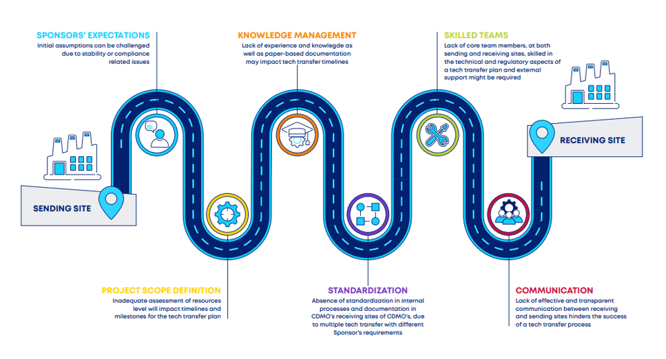 During a technology transfer process, both the originating and receiving sites must navigate numerous potential challenges to ensure its success. The tasks involved in tech transfers are difficult to define, especially when dealing with inherently complex manufacturing processes that may have various iterations based on the discontinuities that need to be addressed.