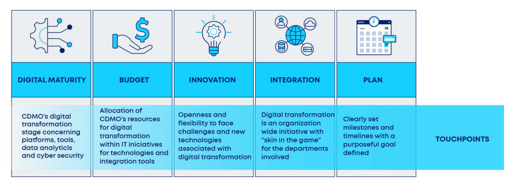 Table 1 – Touchpoints when assessing digital transformation maturity of a CDMO