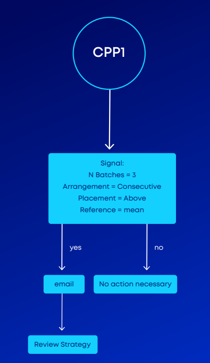 Defining statistical control limits and response signals is essential in creating a CPV strategy aligned with QbD principles. Digital platforms enable the setup of rule-based alarms, such as the application of Westgard rules, using decision trees to trigger real-time notifications when statistical anomalies occur, facilitating timely corrective actions (see Figure 5).