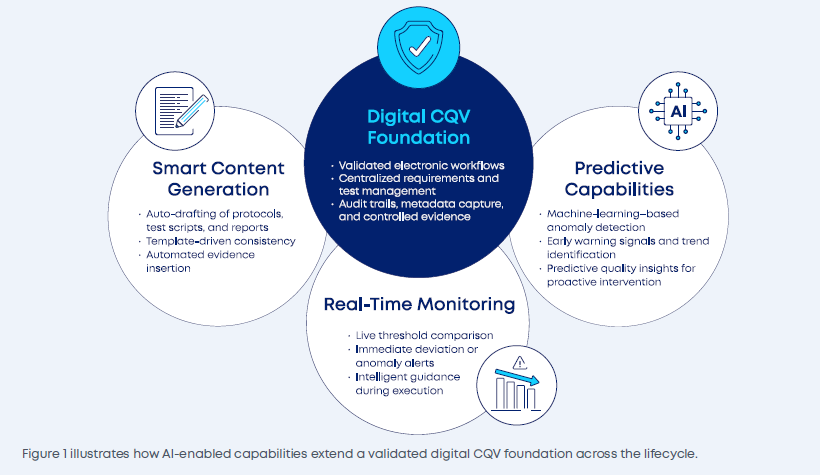 - AI-enabled features can accelerate drafting, support real-time execution monitoring, and improve anomaly detection, but only on top of a compliant digital CQV foundation.