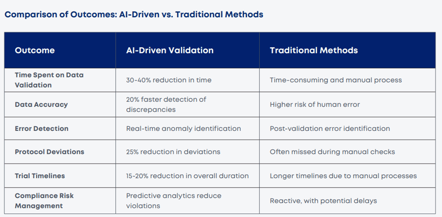 - Jahnavi Vellanki. (2025, February 02). Explore how AI-driven validation tools can improve data integrity and compliance in clinical trial management. International Research Journal of Modernization in Engineering Technology and Science.